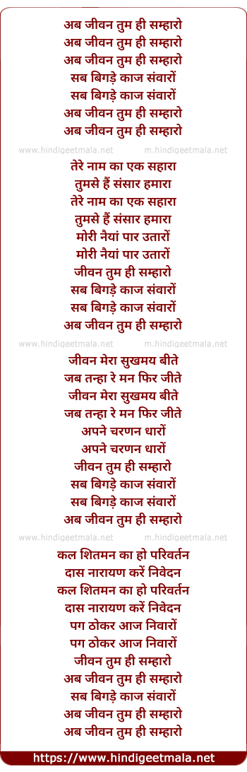 Lyrics of Ab Jeevan Tum Hi Samharo - अब जीवन तुम ही सम्हारो
