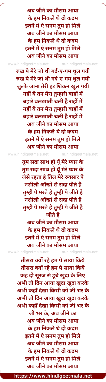 Lyrics of Ab Jine Ka Mausam Aaya - अब जीने का मौसम आया
