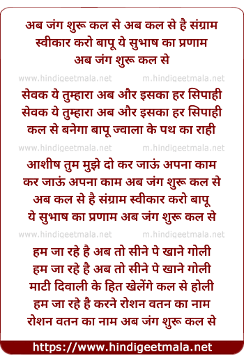 Lyrics of Ab Jung Shuru Kal Se - अब जंग शुरू कल से