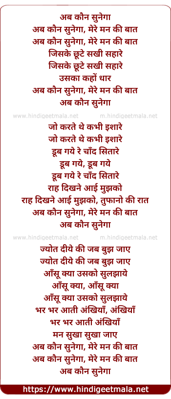 Lyrics of Ab Kaun Sunega Mere Man Ki Baat - अब कौन सुनेगा