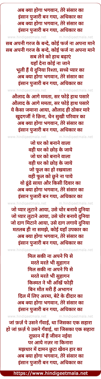 Lyrics of Ab Kya Hoga Bhagwan - अब क्या होगा भगवान