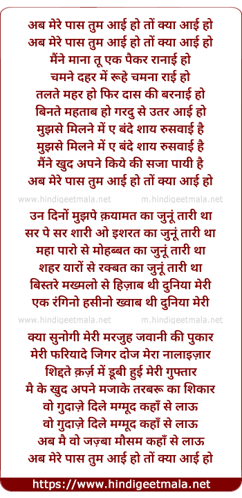 Lyrics of Ab Mere Paas Tum Aye Ho - अब मेरे पास तुम आई हो तों क्या आई हो