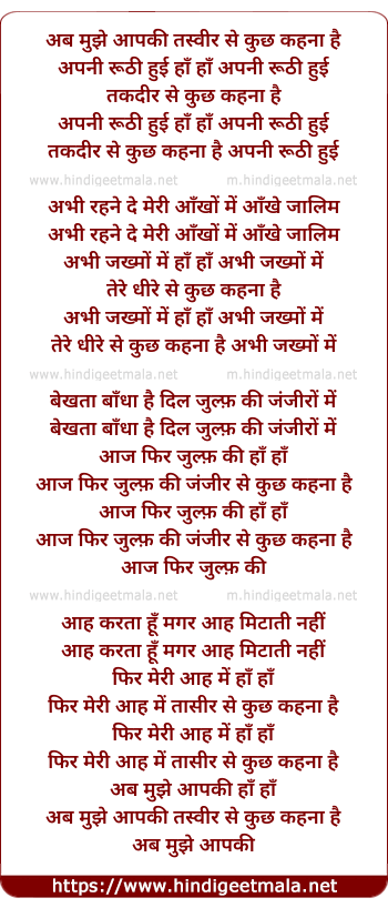 Lyrics of Ab Mujhe Aapki Tasvir Se Kuch Kehna Hai - अब मुझे आपकी तस्वीर से कुछ कहना है