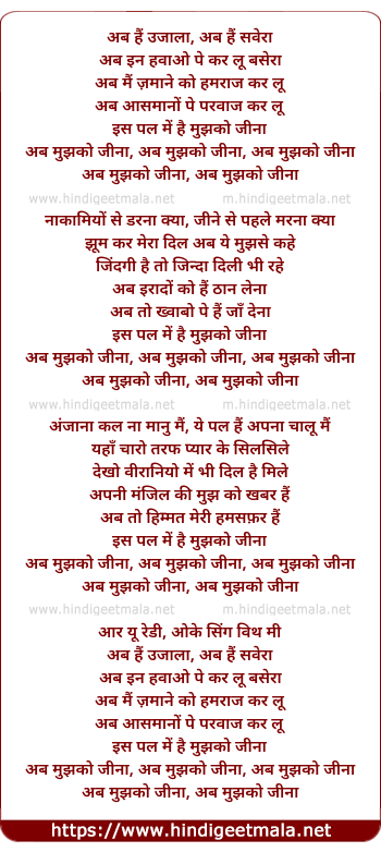 ab mujhko jeena, ab mujhko jeena, ab mujhko jeena