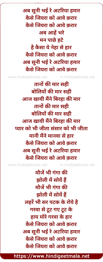 Lyrics of Ab Suni Bhayi Re Atariya Humar