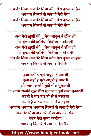 Lyrics of Ab Tere Siva Kaun Mera Krishna Kanhaiya - अब तेरे सिवा कौन मेरा कृष्ण कन्हैया