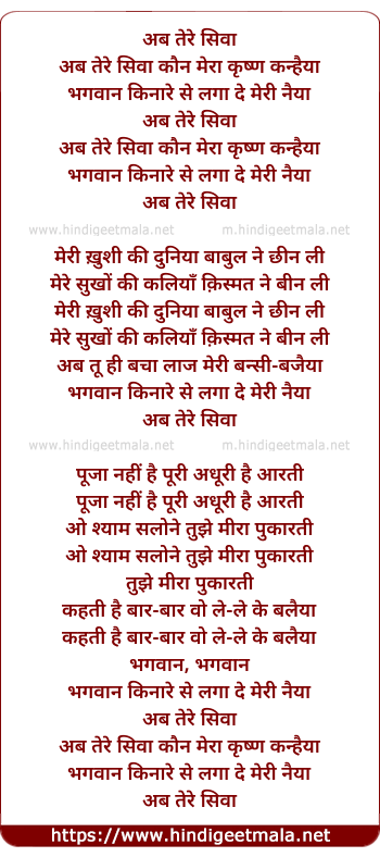 Lyrics of Ab Tere Siwa Kaun Mera Krishan Kanhaiya - अब तेरे सिवा कौन मेरा कृष्ण कन्हैया