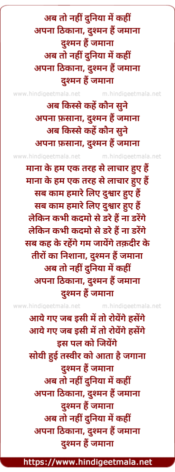 Lyrics of Ab Toh Nahin Duniya Me - अब तो नहीं दुनिया में