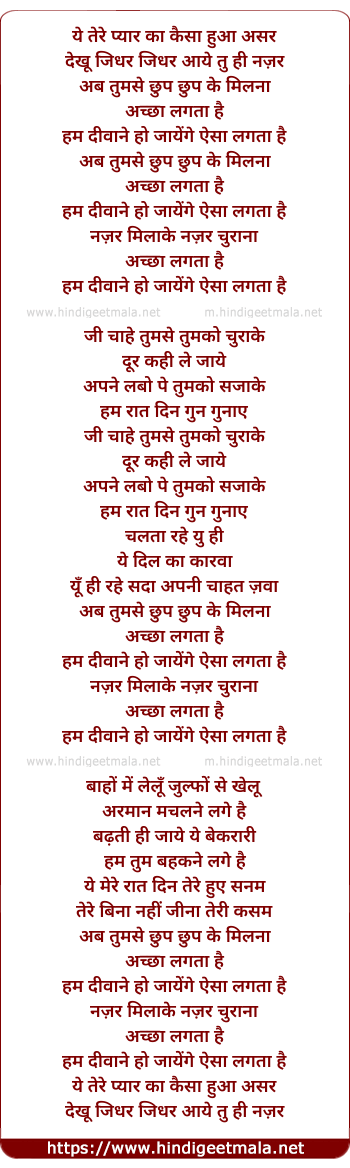 Lyrics of Ab Tum Se Chup Chup Ke Milna Acha Lagta Hai - अब तुमसे छुप छुप के मिलना अच्छा लगता है