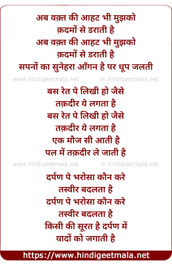 Lyrics of Ab Waqt Ki Aahat Bhi Mujhko Kadmo Se Darati Hai - अब वक़्त की आहट भी मुझको क़दमों से डराती है