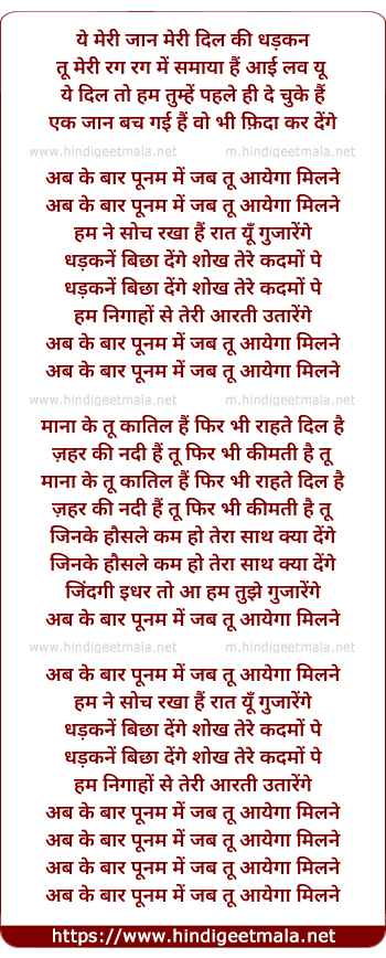 Lyrics of Ab Ke Bar Punam Me - अब के बार पूनम में