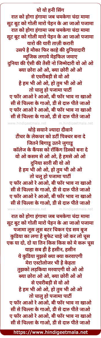 Lyrics of Raat Ko Hoga Hungama Jab Chamkega Chanda Mama - रात को होगा हंगामा जब चमकेगा चंदा मामा