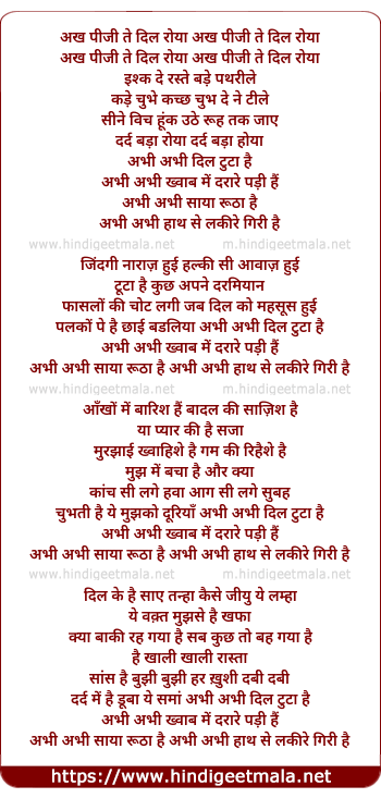 Lyrics of Abhi Abhi Dil Tuta Hai - अभी अभी दिल टुटा है