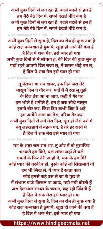 Lyrics of Abhi Kuch Dino Se - अभी कुछ दिनों से