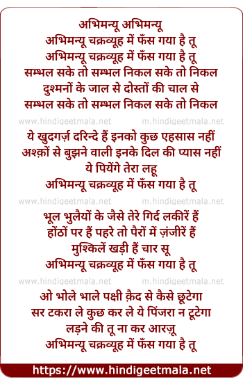 Lyrics of Abhimanyu Chakravyuh Men Phans Gayaa Hai Tu - अभिमन्यू चक्रव्यूह में फँस गया है तू