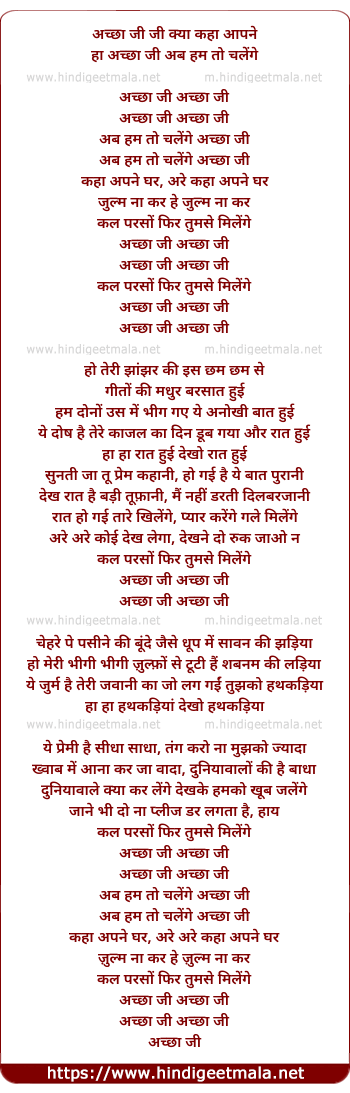 Lyrics of Achchhaa Ji, Chehare Pe Pasine Ki Bunden - अच्छा जी, चेहरे पे पसीने की बूंदें