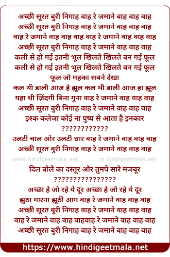 Achhi Surat Buri Nigah waah re jamane waah waah waah