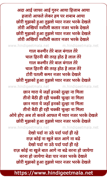 chori mujhko hua tujhse pyar najar bharke dekhle