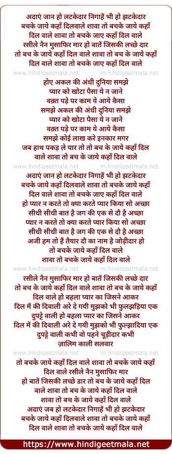 Lyrics of Adaye Jab Ho Latkedar Nigahe Bhi Ho Jatkedar - अदाएं जान हो लटकेदार निगाहें भी हो झटकेदार