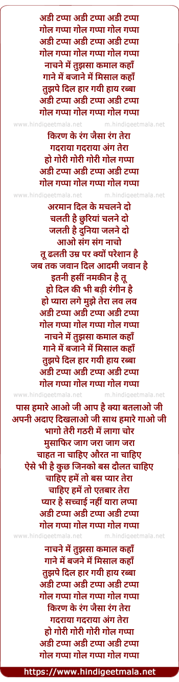 Lyrics of Adi Tappa Adi Tappa, O Gol Gappa - अडी टप्पा अडी टप्पा ,ओ गोल गप्पा