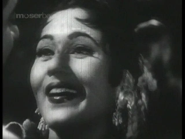 screen and Asha Bhosle at the microphone
