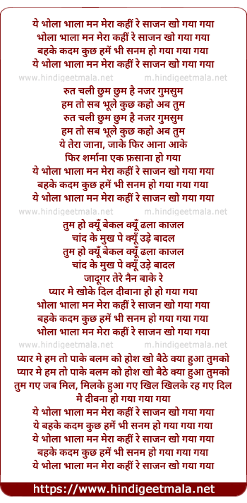 ye bhola bhala man mera kahi re sajan kho gaya gaya