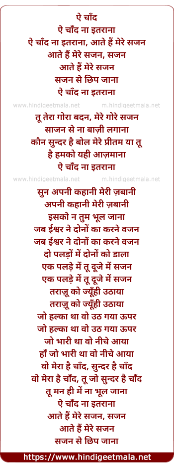Lyrics of Ae Chand Na Itrana - ऐ चाँद