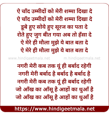 Lyrics of Ae Chand Ummido Ko - ऐ चाँद उम्मीदों को
