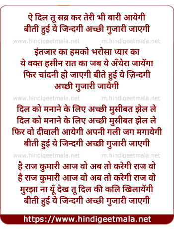 Lyrics of Ae Dil Abhi Tu Sabr Kar - ऐ दिल अभी तू सब्र कर