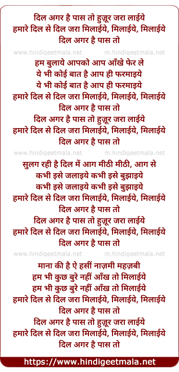 Lyrics of Ae Dil Agar Hai Paas - ऐ दिल अगर है पास