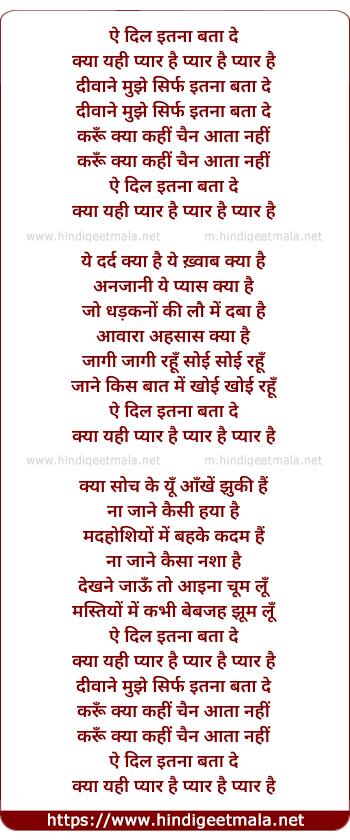 kya yahi pyar hai pyar hai pyar hai