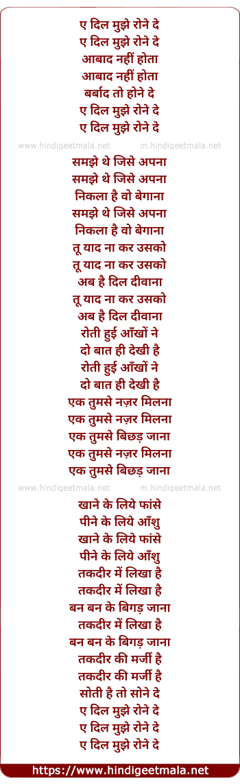 Lyrics of Ae Dil Mujhe Rone De - ए दिल मुझे रोने दे