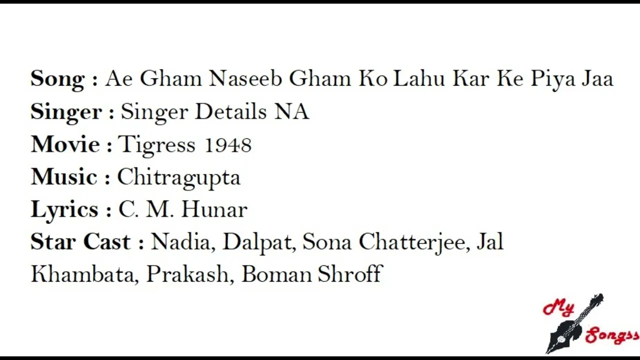 Lyrics of Ae Gham Naseeb Ko Lahu Kar Ke Piya Ja - ऐ गम नसीब को लहू करके पिये जा