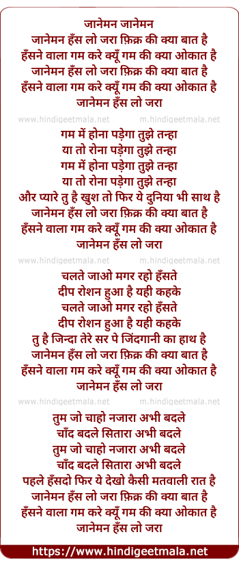 Lyrics of Ae Janeman Hans Lo Zara - ऐ जानेमन हँस लो जरा