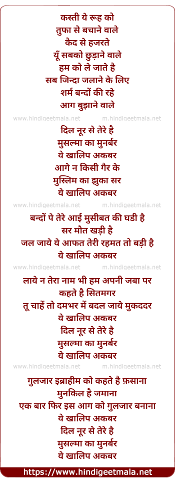 Lyrics of Ae Khalike Akbar