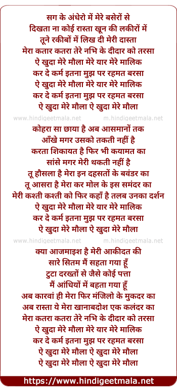Lyrics of Ae Khuda Mere Maula - ऐ खुदा मेरे मौला