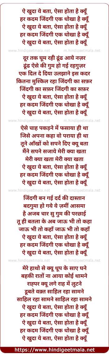 Lyrics of Ae Khuda Ye Bata, Aisa Hota Hai Kyu - ऐ खुदा ये बता, ऐसा होता है क्यूँ