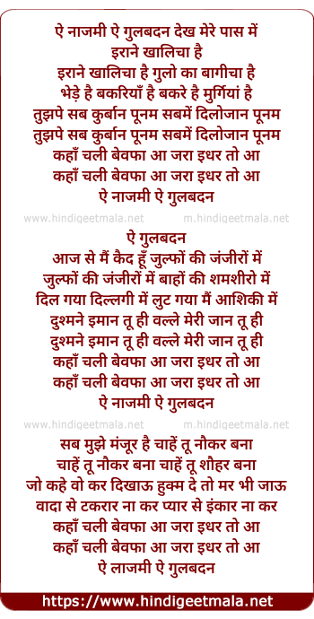Lyrics of Ae Naznin Ae Gulbadan - ऐ नाजमी ऐ गुलबदन