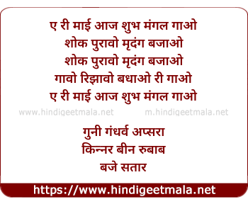 Lyrics of Ae Ri Mayi Aaj Shubhmangal Gao - ए री माई आज शुभ मंगल गाओ