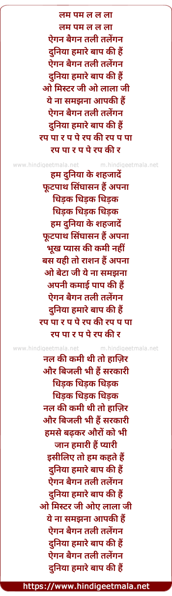 Lyrics of Aeingan Baingan Tali Taleingan - ऐंग्न बैगन तली तलेंगन