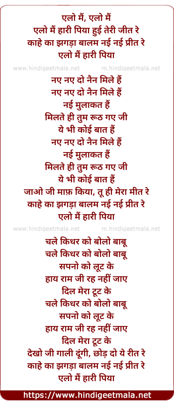Lyrics of Aelo Mai Haari Piya (Remix Version) - एलो मैं, एलो मैं