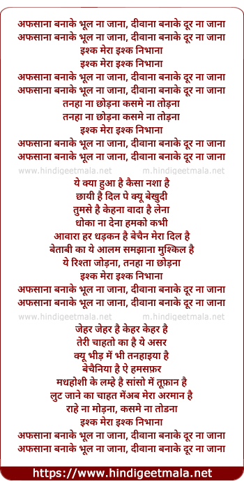 Lyrics of Afsana Banake Bhul Na Jana (Remix) - अफसाना बनाके भूल ना जाना, दीवाना बनाके दूर ना जाना