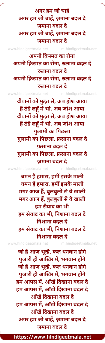 Lyrics of Agar Hum Jo Chahe - अगर हम जो चाहें