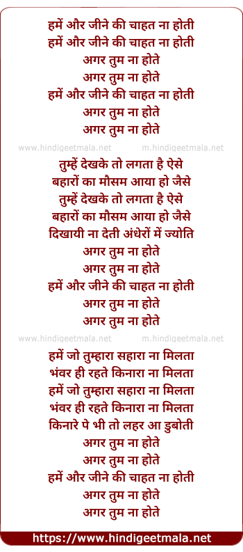 Lyrics of Agar Tum Na Hote (Male) - अगर तुम ना होते