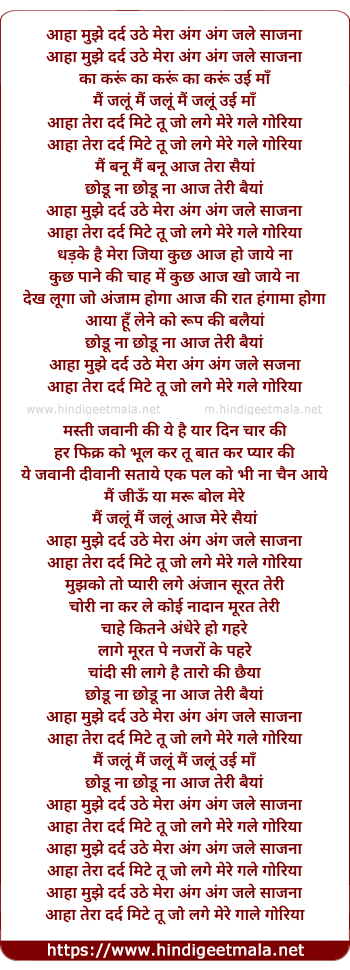 Lyrics of Aha Mujhe Dard Uthe - आहा मुझे दर्द उठे