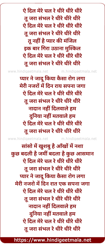 ae dil mere chal re dhire dhire dhire