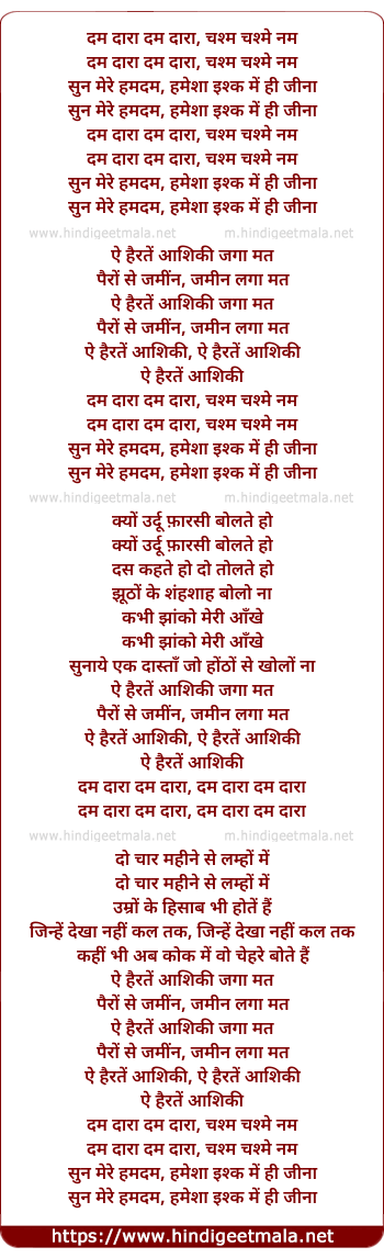 Lyrics of Ae Hairate Aasheeki Jaga Mat - ऐ हैरतें आशिकी जगा मत