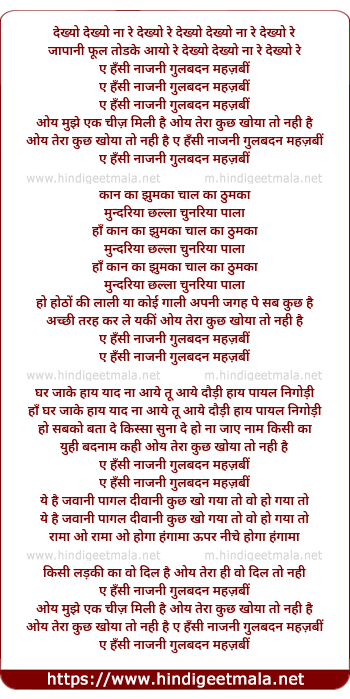 Lyrics of Ai Hasin Naznin Gulbadan Mehjabi - ए हँसी नाजनी गुलबदन महज़बीं