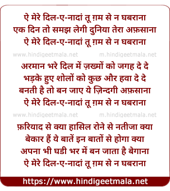 Lyrics of Ai Mere Dil-E-Naadaan, Tu Gam Se Na Ghabaraanaa - ऐ मेरे दिल-ए-नादां तू ग़म से न घबराना