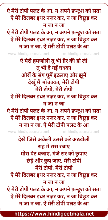 Lyrics of Ae Meri Topi Palat Ke Aa - ऐ मेरी टोपी पलट के आ